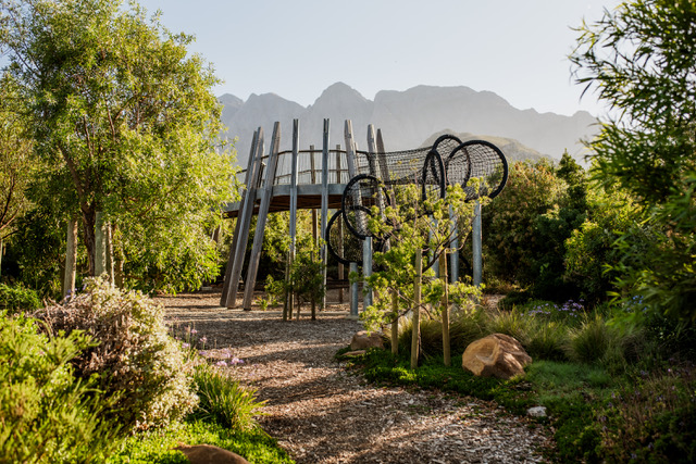 Food and language at Bosjes celebrate Afrikaans heritage. At Bosjes Kombuis, hearty, comforting dishes – think slow-cooked lamb shank – anchor the menu, while children roam freely between rolling lawns and three thoughtfully designed play areas. Crafted from wood, sand and steel, these spaces include a zip line, the Boombrug canopy walk and a vertical labyrinth, ensuring that nature and play are seamlessly intertwined.