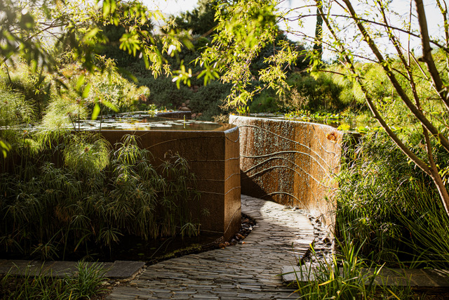 It’s as if it’s a series of carefully composed moments with indigenous gardens, water features, pathways and pavilions that encourage slow movement and pause to reflect. Buildings are understated and the materials and colours echo the valley: white, stone, timber and glass. There’s a sense of quiet restraint.