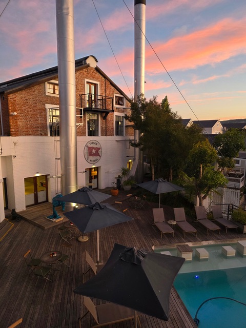 Knysna’s Turbine Hotel & Spa is housed in what was once a working power station, with original pipes, boilers and machinery seamlessly woven into the living spaces. The result is a striking industrial-chic aesthetic that blends heritage with contemporary luxury.