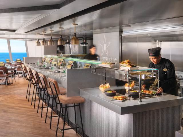 Dining is central to the experience. Most venues are included, though some are premium are require payment. The two main dining rooms – the Commodore Room and Hudson’s – share the same rotating daily menu, with Hudson’s offering panoramic, floor-to ceiling ocean views. The Indulge Food Hall is styled like a food market, with 11 food-truck-style eateries. Orders are placed via tablet – quick and intuitive – with options ranging from barbecue to Asian noodles (excellent) and Indian dishes. Surfside, more canteen-like, was consistently the busiest. Even the onboard Starbucks, a paid extra, was packed from morning till night.