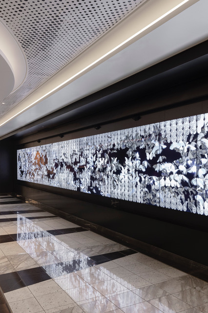 It’s worth wandering with intention, because there are delightful design details tucked throughout. A periodic table installation nods to science; a 16-metre-long interactive, digital artwork by Dominic Harris lines the exterior of the Metropolitan Bar. Titled Every Wing Has a Silver Lining, it features silver butterflies that flutter and scatter when touched as passengers walk past.