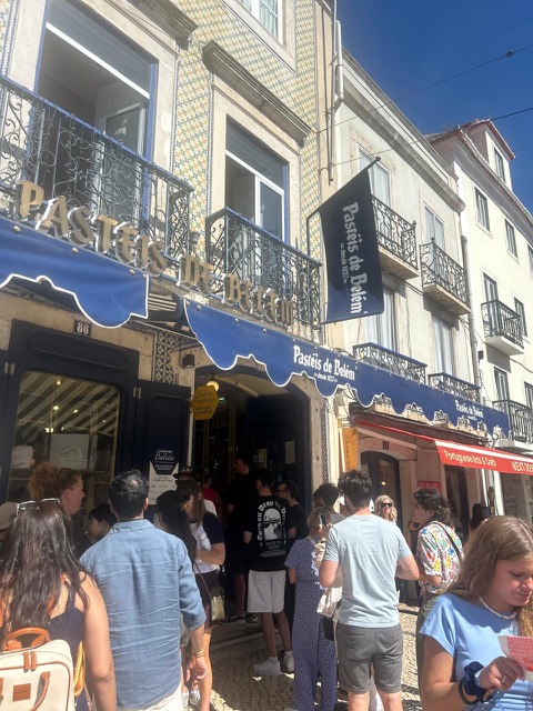 A short stroll from Chiado and we head to Rua dos Correeiros (above a site that reveals over 2500 years of Lisbon’s history under one of its busiest sites). Then to Rua August, where people line restaurants and street musicians perform. We head to Confeitaria Nacional, one of Lisbon’s oldest and most famed pastry shops and for nearly two centuries the official royal confectioner, bustles with visitors.