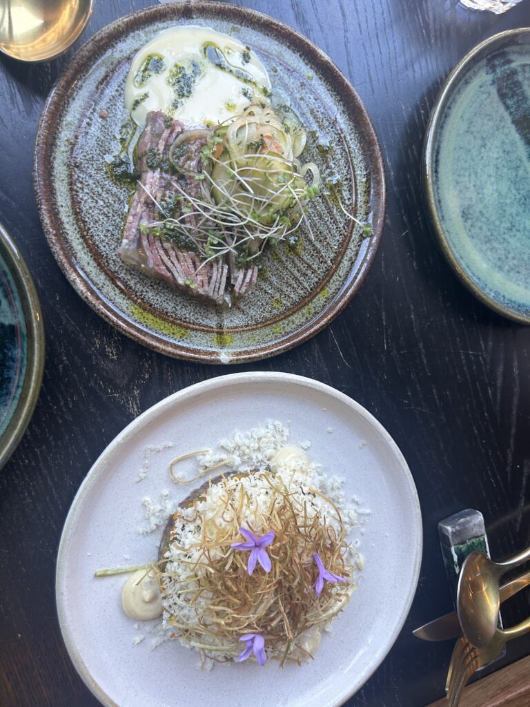 There’s a reason why the restaurant has garnered so many awards. Think yellowfin tuna sashimi with zucchini atchar and pappadum. Coffee-marinated kudu loin with pumpkin labneh and chickpea shoots. Smoked Karoo lamb with samp-and-bean tabbouleh and kapokbos jus. A gingerbread flan dessert drizzled with ideal milk nostalgia.