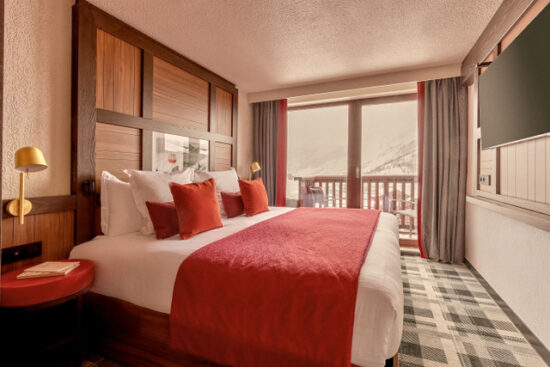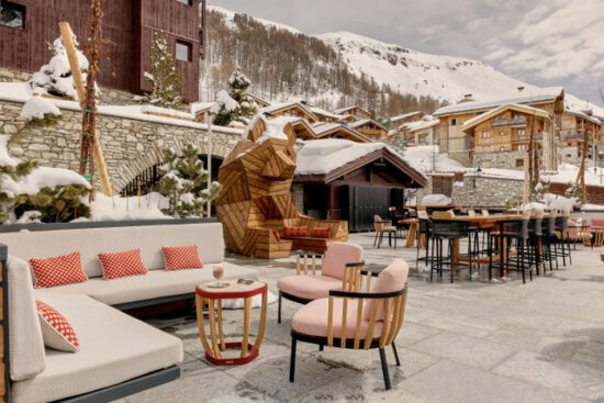 The resort’s chic-casual aesthetic blends retro notes with contemporary warmth. Designed by French designer Marc Hertrich, its stone and timber palette mirrors Val d’Isère’s architecture, lending it a chalet-like authenticity.