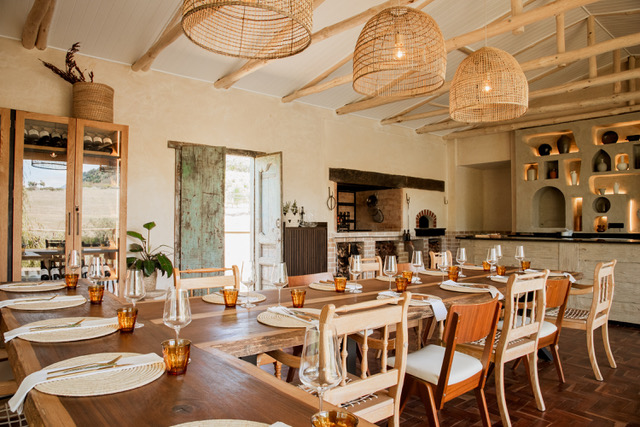 Lunch begins casually on the veranda of the main farmhouse, where guests sip a welcome drink before chef Shaun Scrooby appears to gather everyone for the short walk down to the restaurant. Along the way, we spot zebra, wildebeest and nyala.